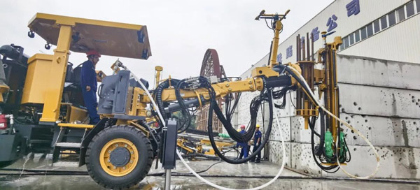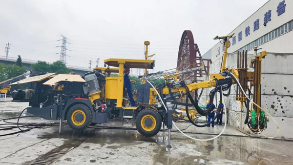 相較于傳統(tǒng)先機器鉆孔、后人工裝桿的施工流程,徐工XUB135(CYTM41/2)錨固裝置可實現(xiàn)鉆孔、樹脂藥卷填充、上錨桿一體化施工。